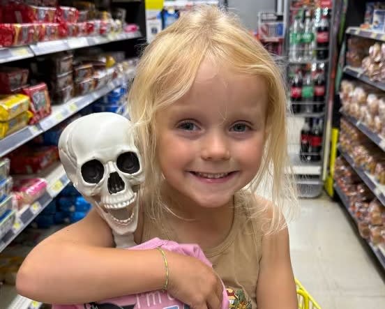 If 3-year-old Aspen Wherry is traveling anywhere during this spooky season, she makes sure to bring her emotional support skeleton. Mr. Bones is always along for the ride, whether it's on the swings or on trips to the grocery store and the doctor. See the adorable videos.